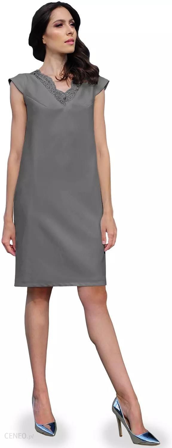 Elegancka sukienka z dekoltem na plecach i koronką (Szary, XL)