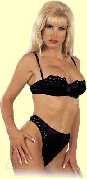 Komplet: staniczek i figi wykończone delikatnym ażurem. Miseczki płytkie, odpinane ramiączka. Materiał: 95% polyamide/5% elastane. Kolor czarny. Rozmiar: S, M, L