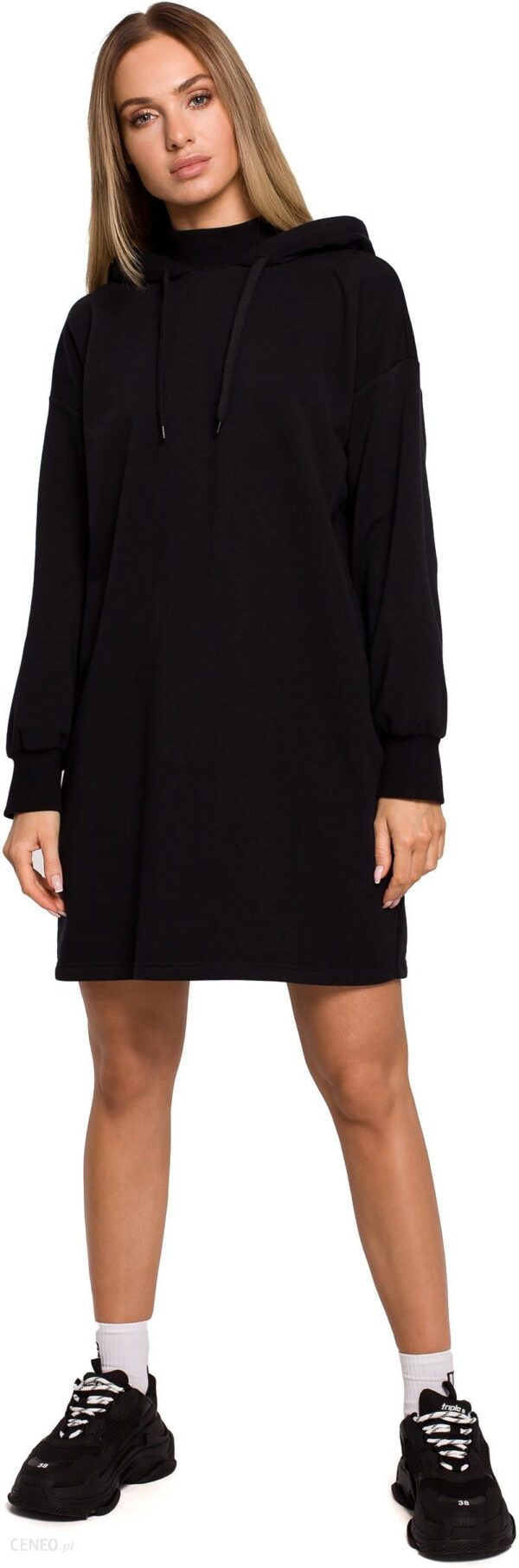 Moe Sukienka oversize z golfem i kapturem Czarny XXL