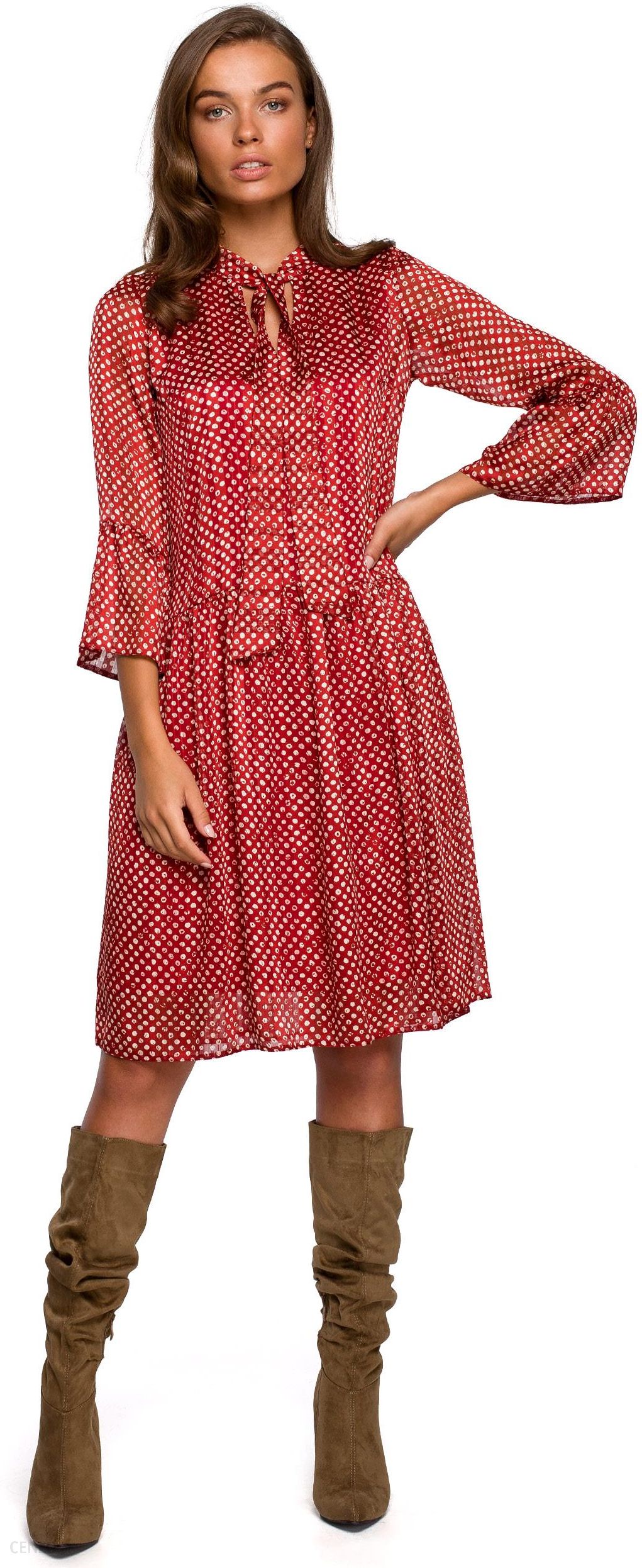 Szyfonowa sukienka w groszki to delikatna i zwiewna propozycja, która sprawdzi się zarówno na co dzień, jak i na wyjątkowe okazje. Dekolt sukienki wiązany jest na szarfę z przodu, a całość wykonana jest z delikatnego szyfonu w nieregularny prążek i nadruk w drobne kropki. Proste rękawy zakończone są falbanami i sięgają za łokieć. Ten model ma luźny krój, ładnie układa się na rożnych typach sylwetki i pięknie wygląda w ruchu. Materiał: 100% poliester Dodatkowe informacje: sukienka na podszewce delikatny szyfon w kropki proste rękawy zakończone falbanami sięgającymi za łokieć dekolt z wiązaniem z przodu odcięcie poniżej talii tworzące falbanę długość przed kolano sukienka zakładana przez głowę, bez zapięcia