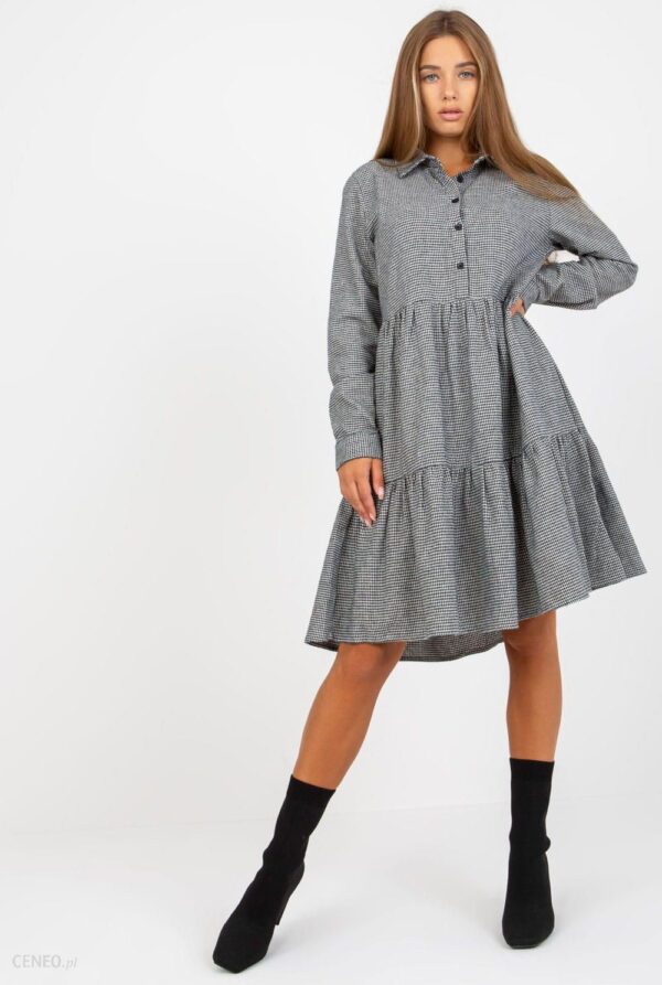 Sukienka o luźnym kroju z długim rękawem. Na przodzie zapinana na guziki. Propozycja na co dzień i nie tylko. Bawełna 100 % RozmiarObwód w biuścieObwód w taliiL91 cm84-90 cmM86 cm78-86 cmS82 cm72-80 cmXL96 cm88-96 cm