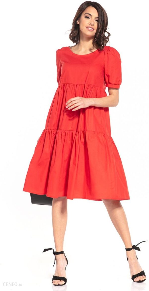 Sukienka midi z dekoltem łódkowym i krótkim bufiastym rękawem. Bawełna 100 % RozmiarDługość całkowitaObwód w biuścieL106 cm102 cmM105 cm98 cmS104 cm94 cmXL107 cm106 cmXS103 cm90 cmXXL108 cm110 cmXXXL109 cm114 cm
